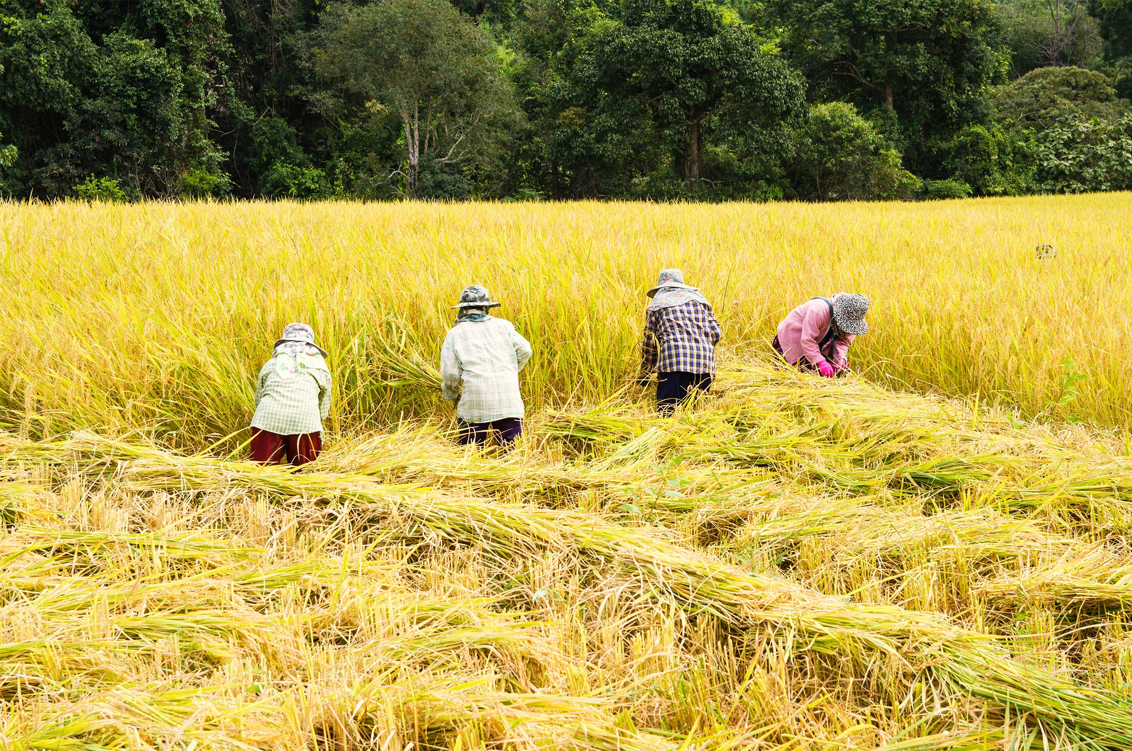 植物を採取したり選んだりするには、たくさんの人が必要です。